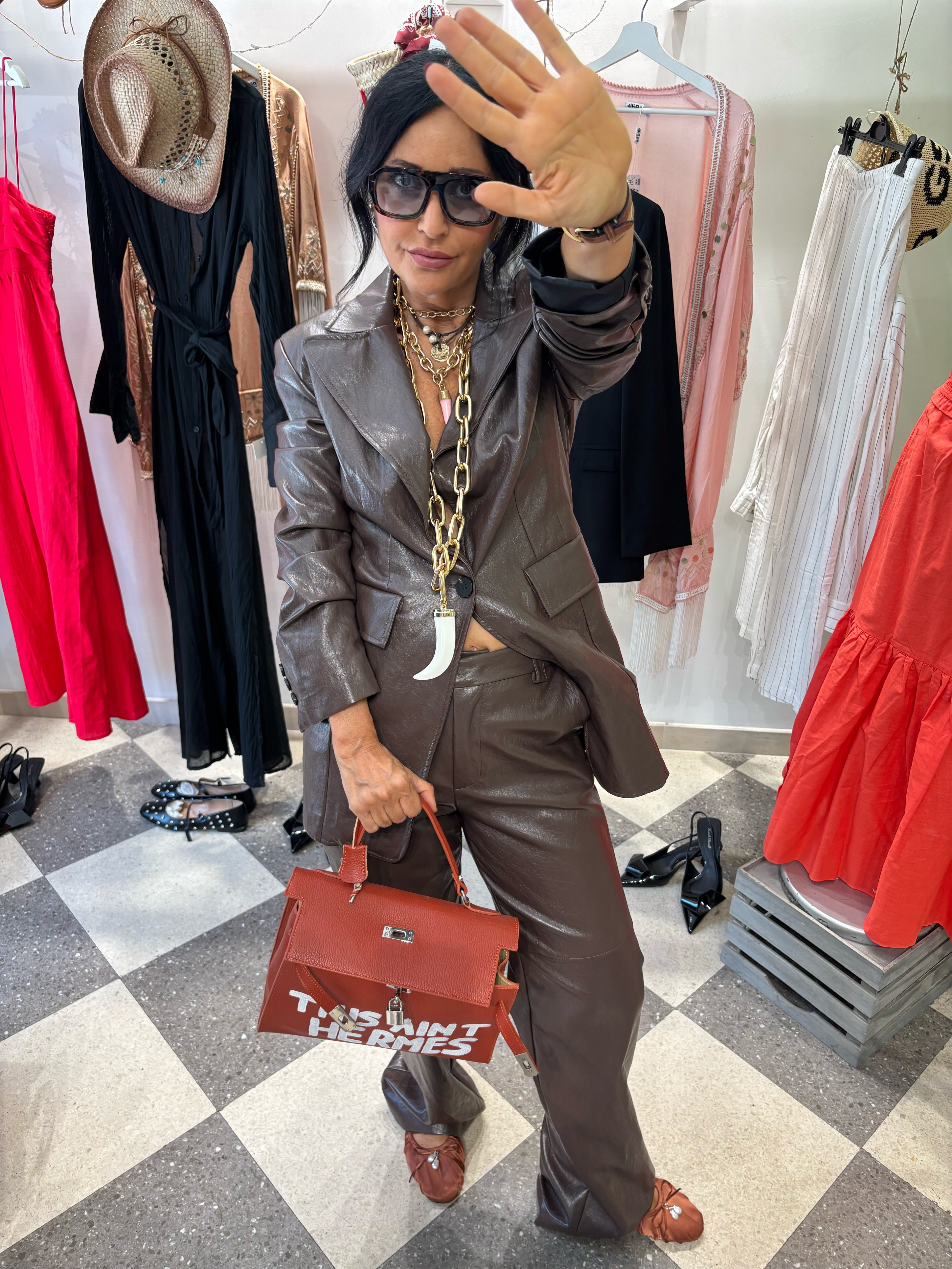 Ogni settimana scelgo personalmente i capi che porto in negozio: un mix di pronto moda ricercato, pezzi vintage che rinascono grazie a lavorazioni artigianali, e creazioni dipinte a mano pensate per chi ama qualcosa di davvero unico.