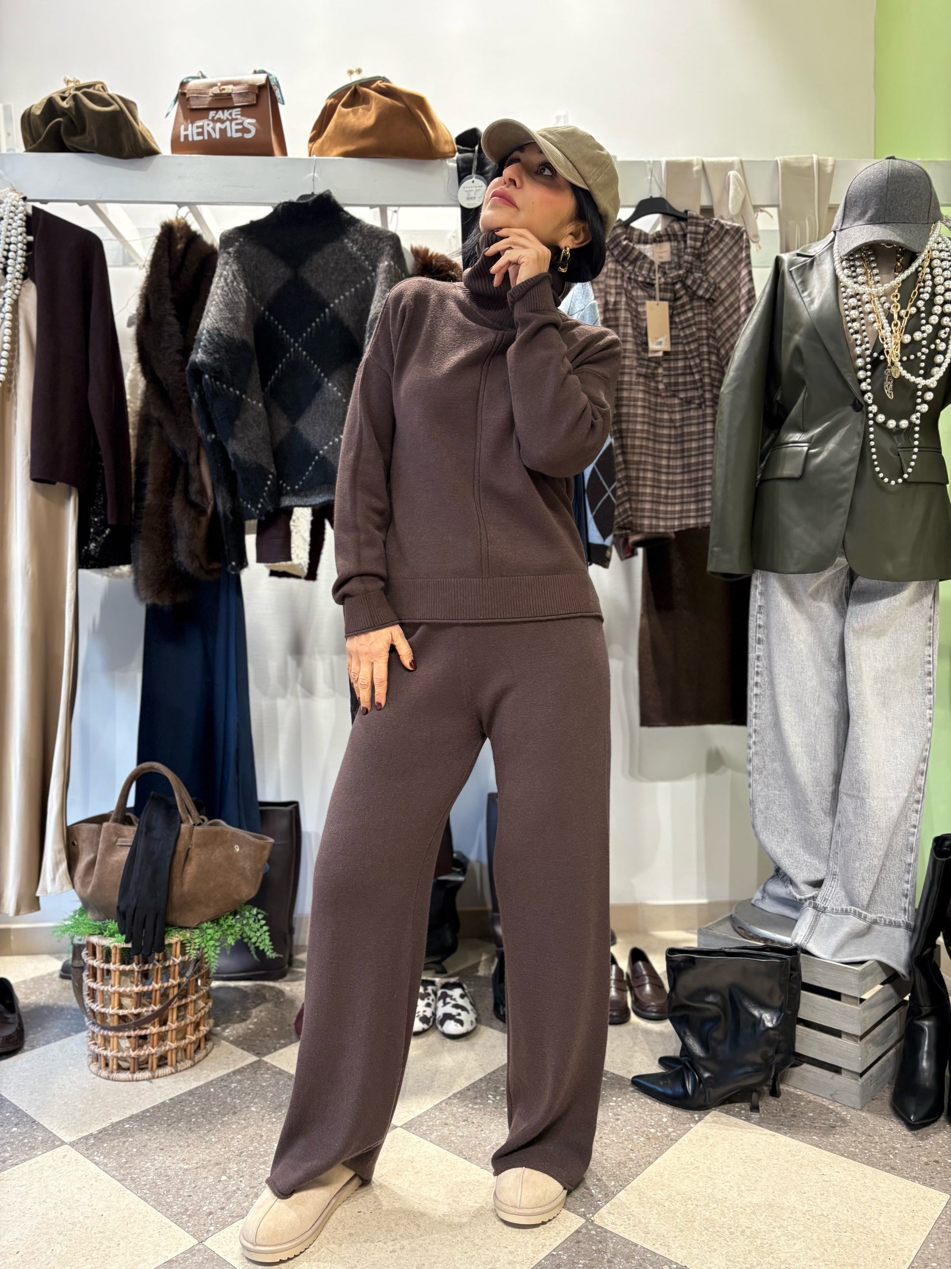 Coordinato in maglia cacao