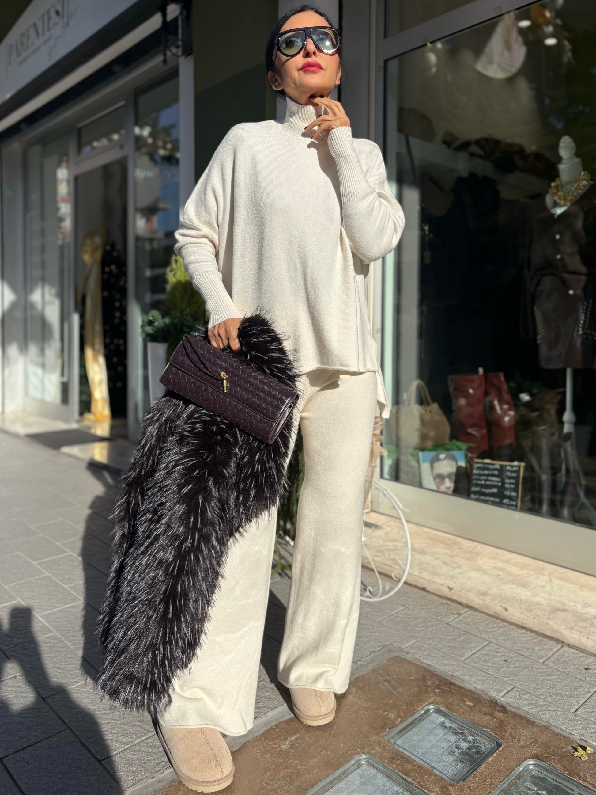 Coordinato in maglia Panna