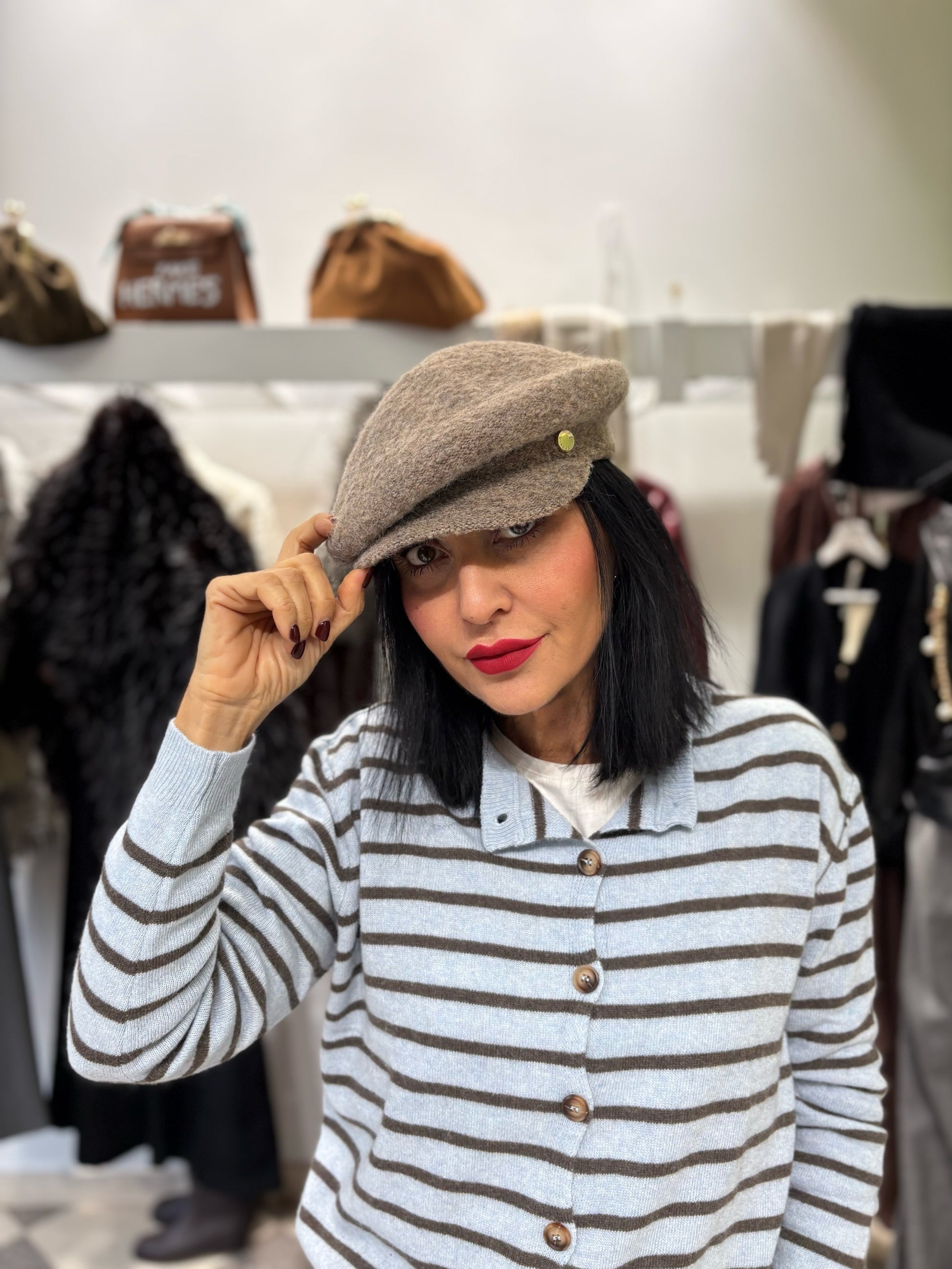 Coppola in lana e viscosa, taglia unica.
