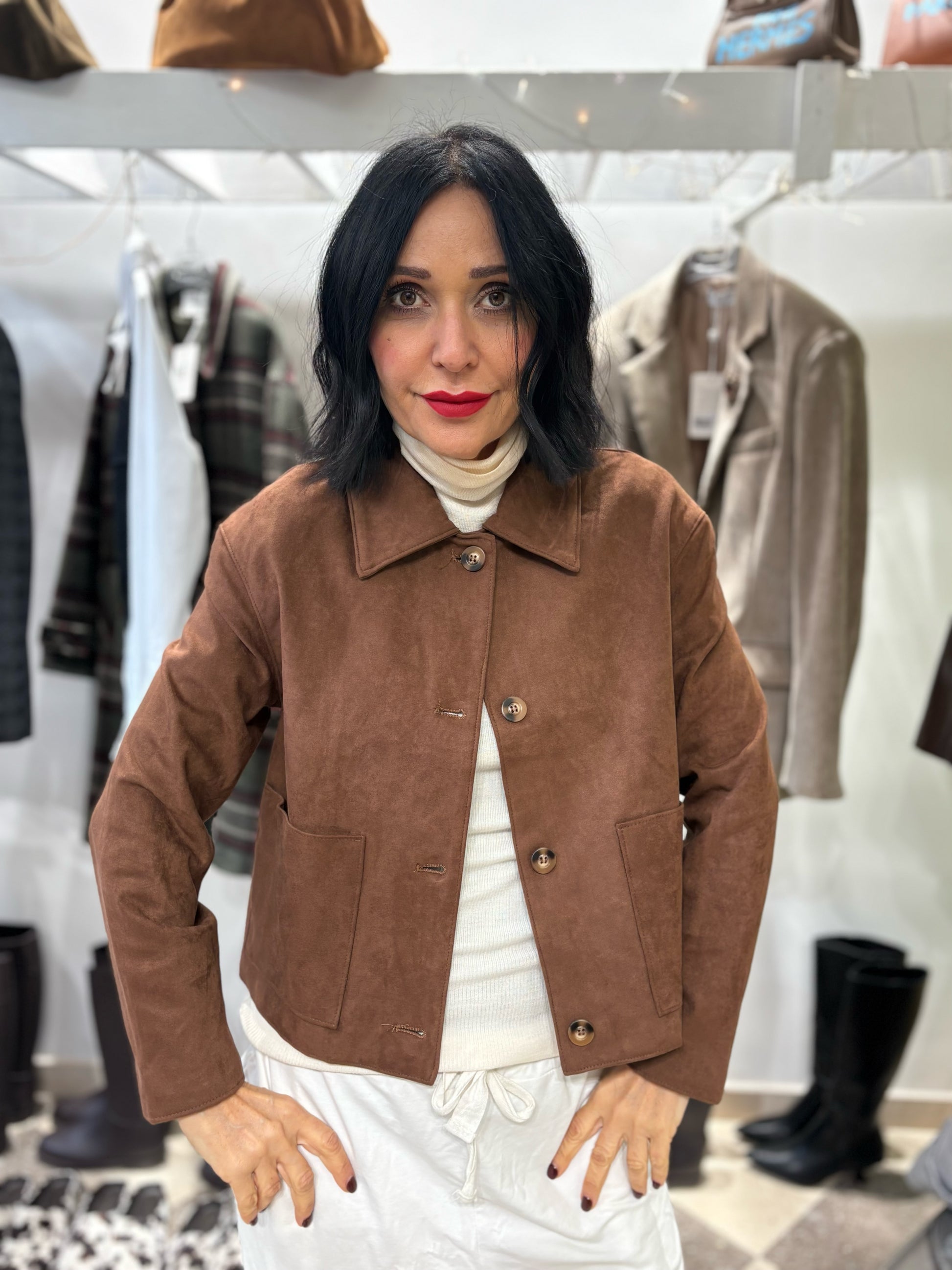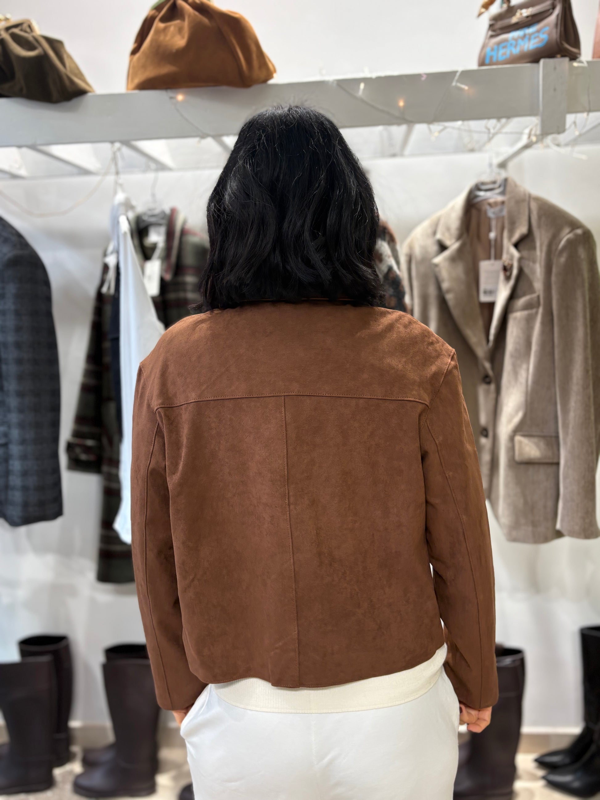 Giacca in eco daino tabacco