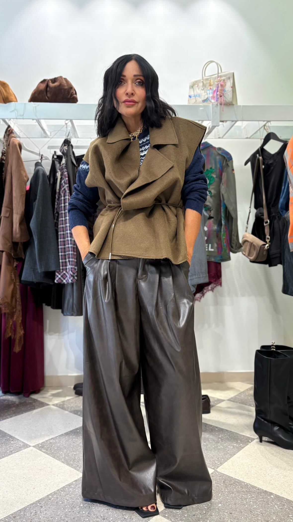 Gilet verde oliva con cinturina in vita