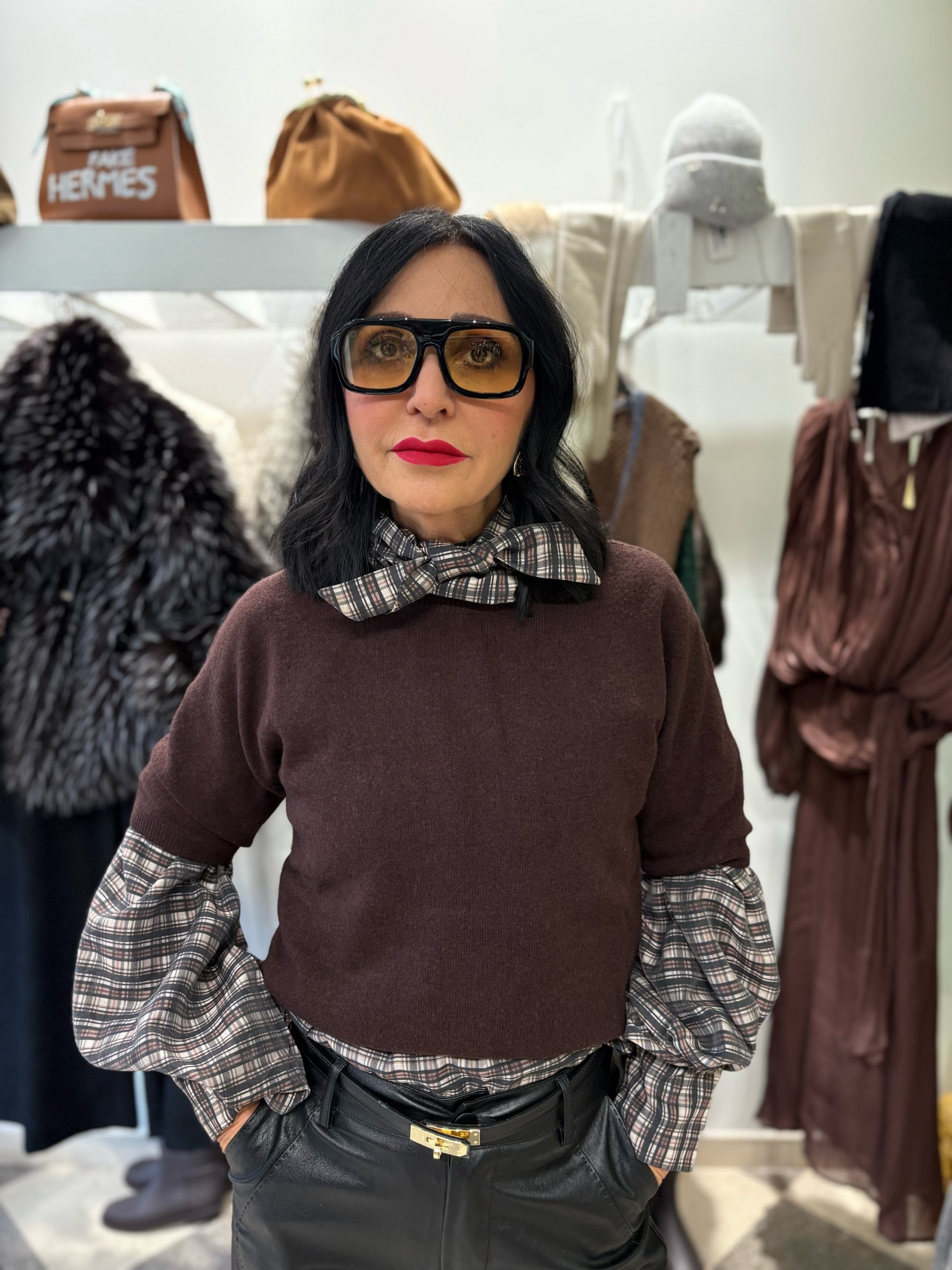 Maglia rasata light in misto cashmere. Vestibilitá regolare, manica corta.