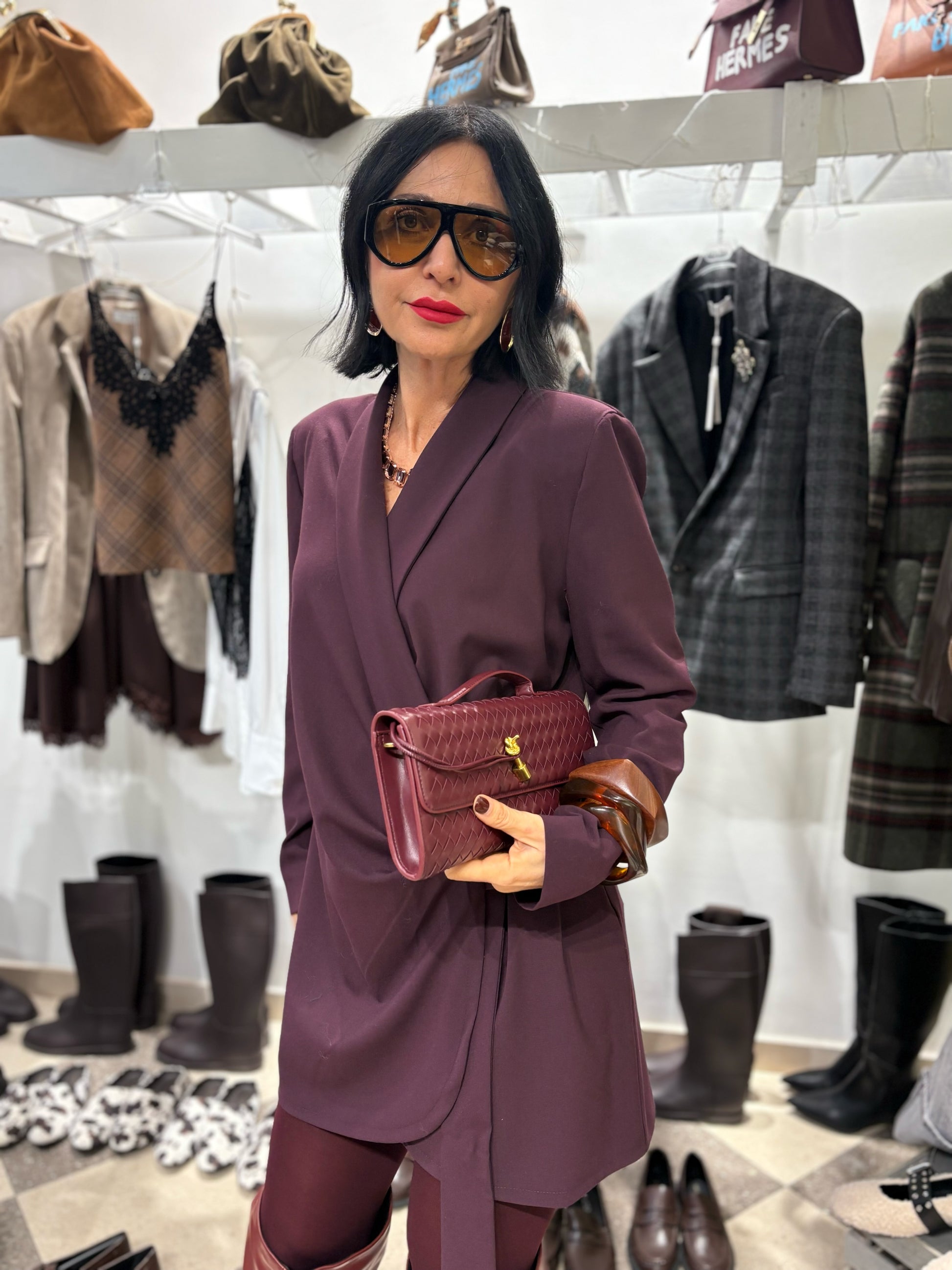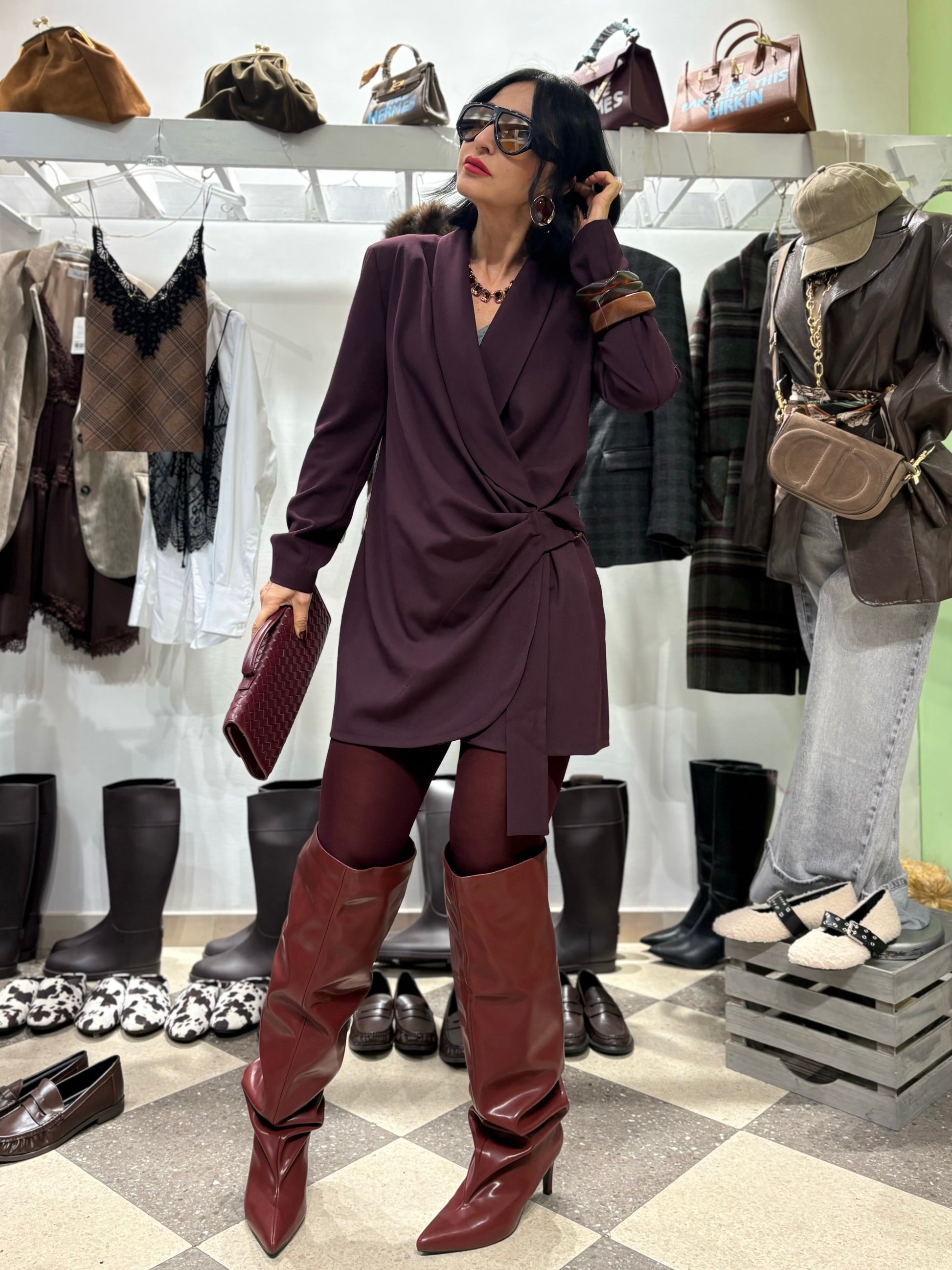 Blazer dress, chiusura a portafoglio con fettuccia interna.