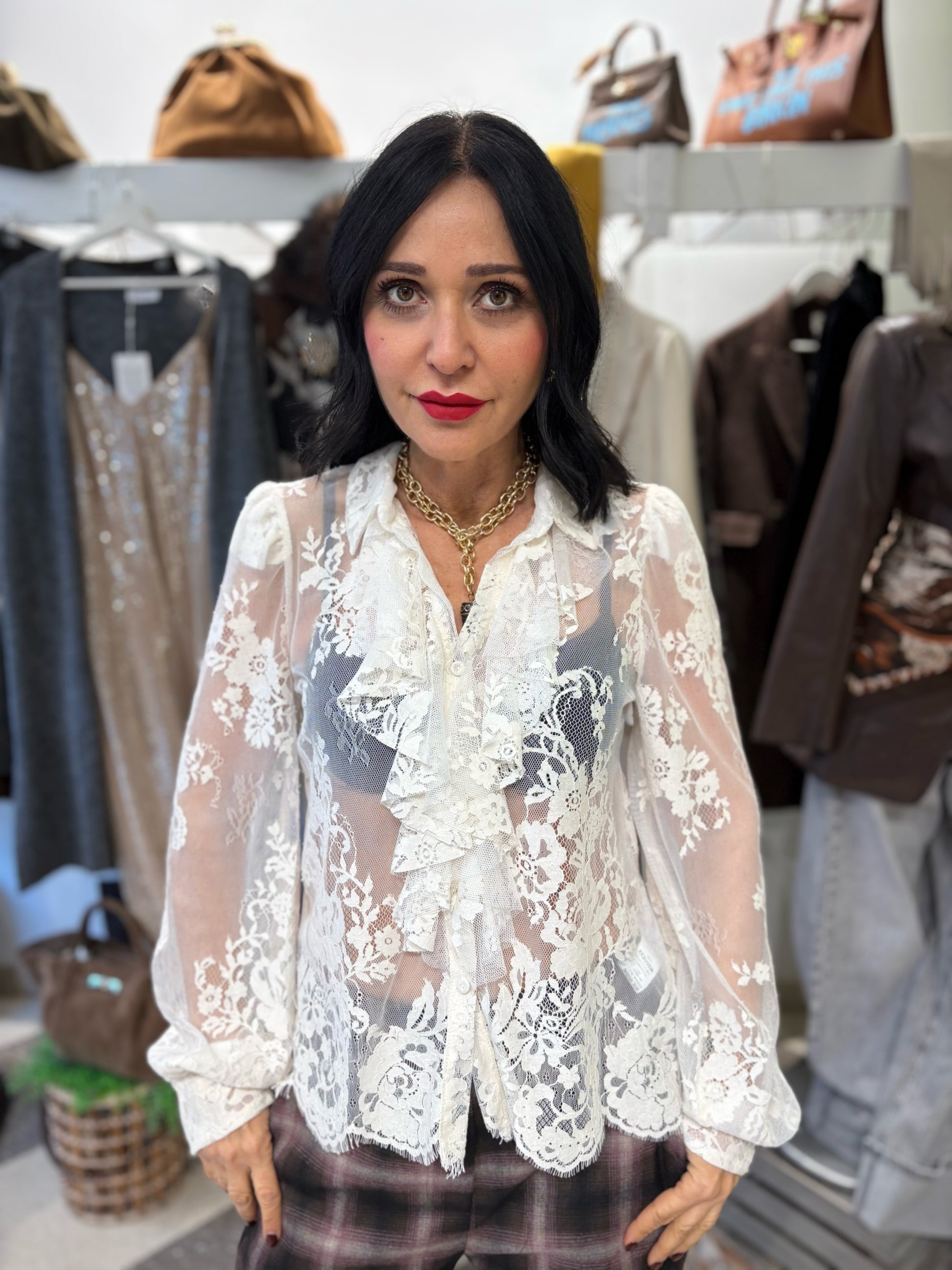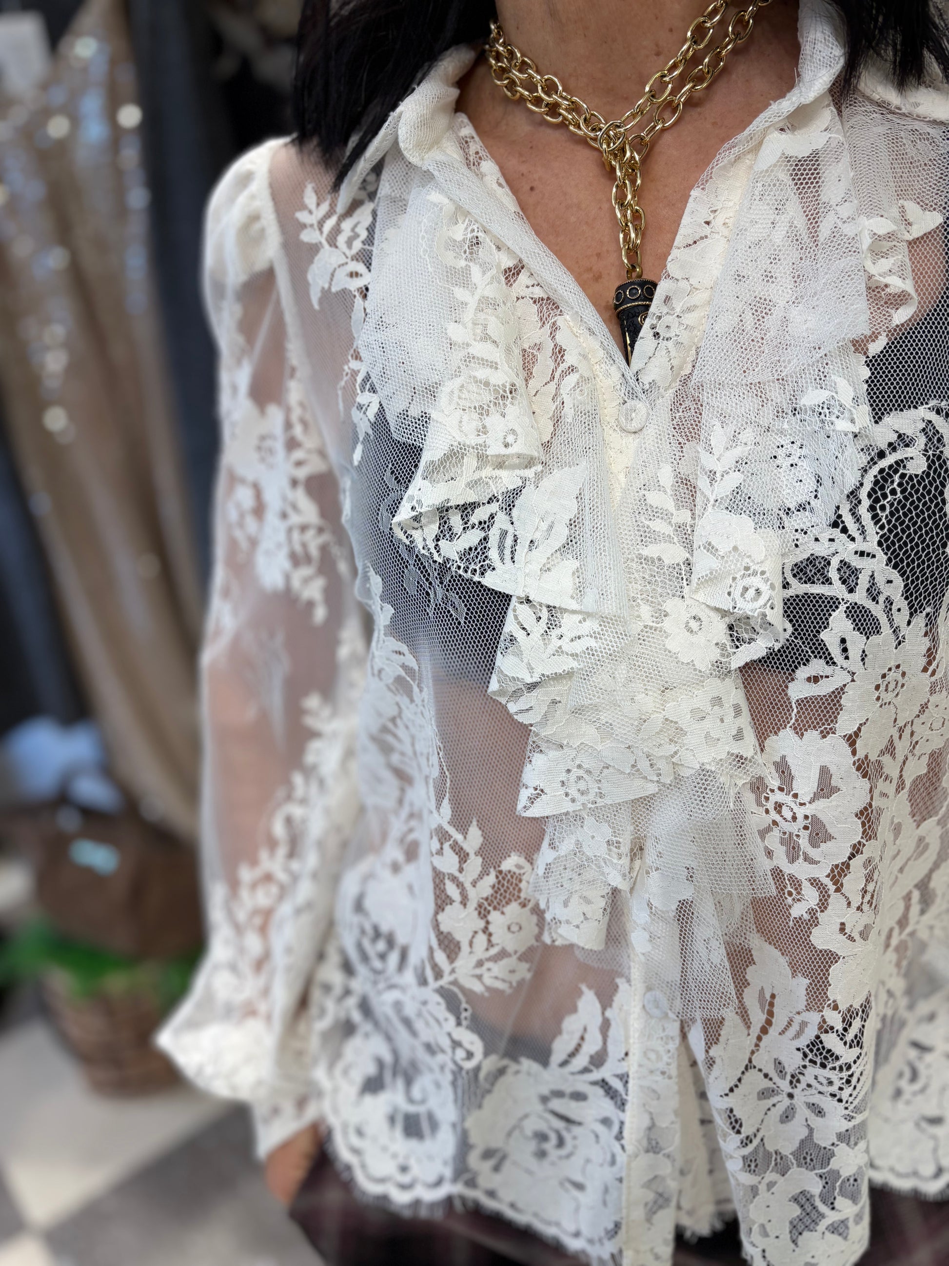 Motel camicia in pizzo panna