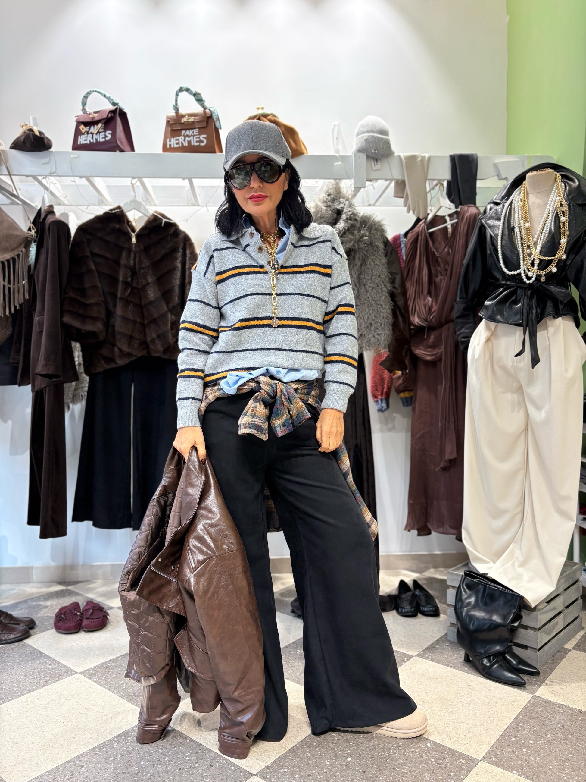 Polo a manica lunga, motivo a righe.