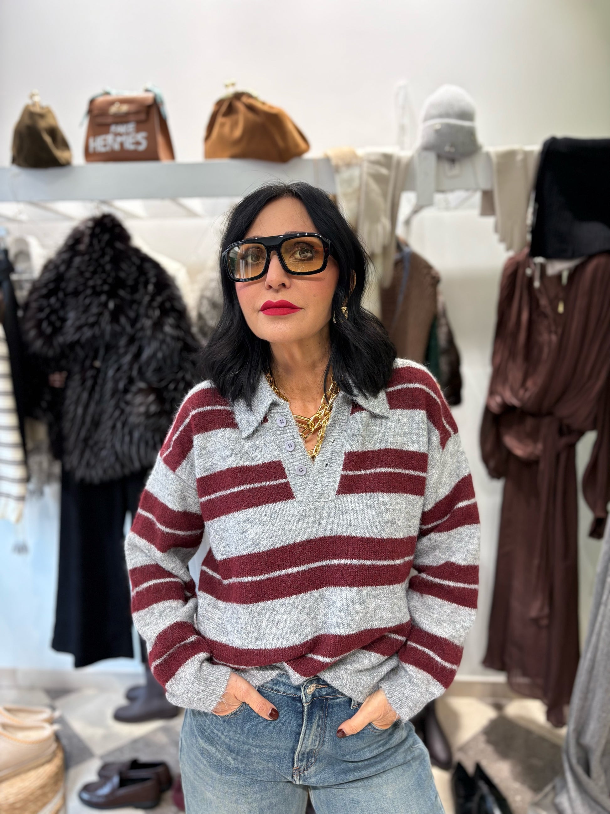 Polo stripes burgundy e grigio